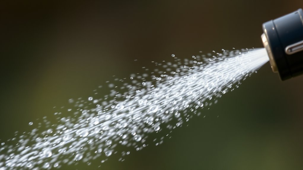 To achieve a perfect spray, focus on your distance and angle. Keep the nozzle at an ideal distance—close enough for even coverage but not so close that drips occur. Hold the nozzle perpendicular for uniform application, tilting slightly to adjust coverage as needed. Moving closer produces thicker spray, while stepping back spreads it out more evenly. Adjusting your angle controls spray shape and density. Mastering these simple geometric principles helps you get professional results every time.
