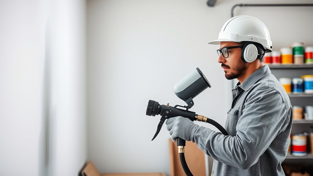 Sure, you need special safety gear—because splattering paint and fumes are just fashion statements, right? Actually, yes. You should wear gloves, goggles, and a respirator to protect yourself from high-pressure paint and potentially harmful fumes. Skipping safety gear isn’t just reckless; it could land you in the ER. So, gear up like a pro, because staying safe is way more stylish than a paint splash on your clothes.