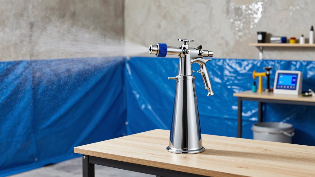 When using high PSI sprayers, I always wear protective gear, including goggles, gloves, and a mask, to avoid fumes and splatters. I make certain proper ventilation to keep the air clear and never point the sprayer at people or fragile surfaces. Before starting, I check hoses and connections for leaks, and I keep a safe distance from the spray area. Staying cautious helps me work safely and effectively.