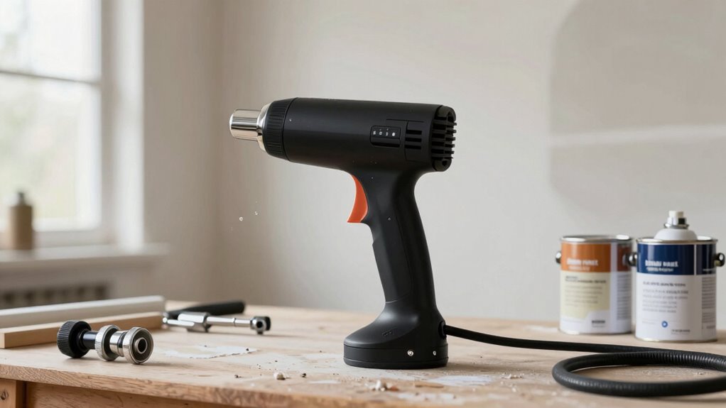 Nozzle versatility options play a significant role in tailoring an airless paint sprayer for drywall primer projects. Reversible and adjustable tips let me customize spray patterns, ensuring even coverage on large surfaces. Different nozzle sizes and shapes give me precise control over paint flow, reducing overspray and waste. Reversible nozzles are a real time-saver, allowing me to quickly clear clogs without stopping work. Multi-nozzle compatibility means I can handle various surface textures and primer viscosities with ease. Adjustable nozzles help me maintain a consistent finish by controlling spray width and atomization, especially on expansive drywall areas. Overall, having versatile nozzle options makes my priming process more efficient, precise, and adaptable to different project requirements.