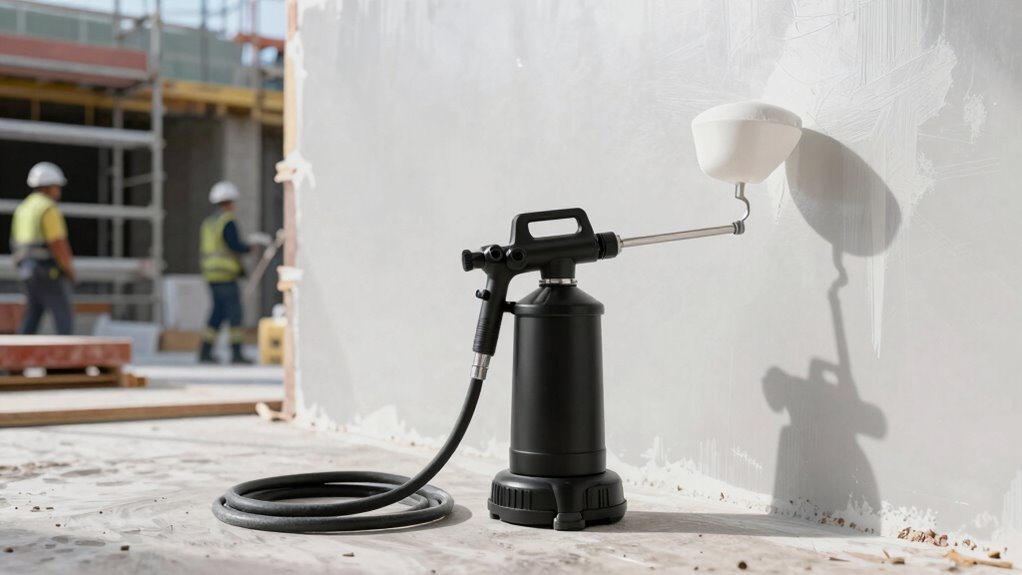 Maintenance varies markedly between models for heavy-duty construction use, and I always find that higher-end sprayers require more regular checks. I focus on cleaning the spray tip, filters, and gun after each use to prevent clogs and guarantee smooth operation. For tougher jobs, I also inspect seals and replace worn parts promptly. Overall, I follow manufacturer guidelines closely, knowing that proper maintenance extends my sprayer’s lifespan and keeps my projects running smoothly.