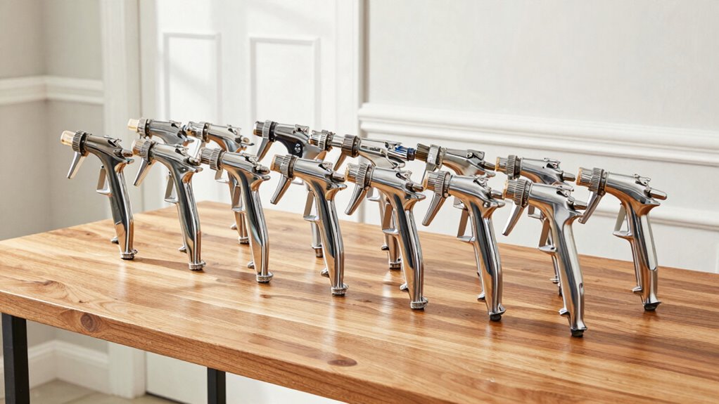 Adjustability features markedly enhance the control and precision needed for painting trim and doors. An adjustable spray pattern lets me customize the width and shape, giving me precise control over edges and corners. Variable pressure controls enable fine-tuning of paint flow, helping me reduce overspray and achieve clean, sharp lines on detailed surfaces. Being able to adjust nozzle size or spray angle lets me adapt to different paint viscosities and surface textures for better coverage. Some sprayers include adjustable flow rate settings, which are essential for delicate trim work, as I can control how much paint is applied per pass. Easily accessible knobs and dials allow quick adjustments during projects, improving efficiency and ensuring I get professional results with minimal effort.