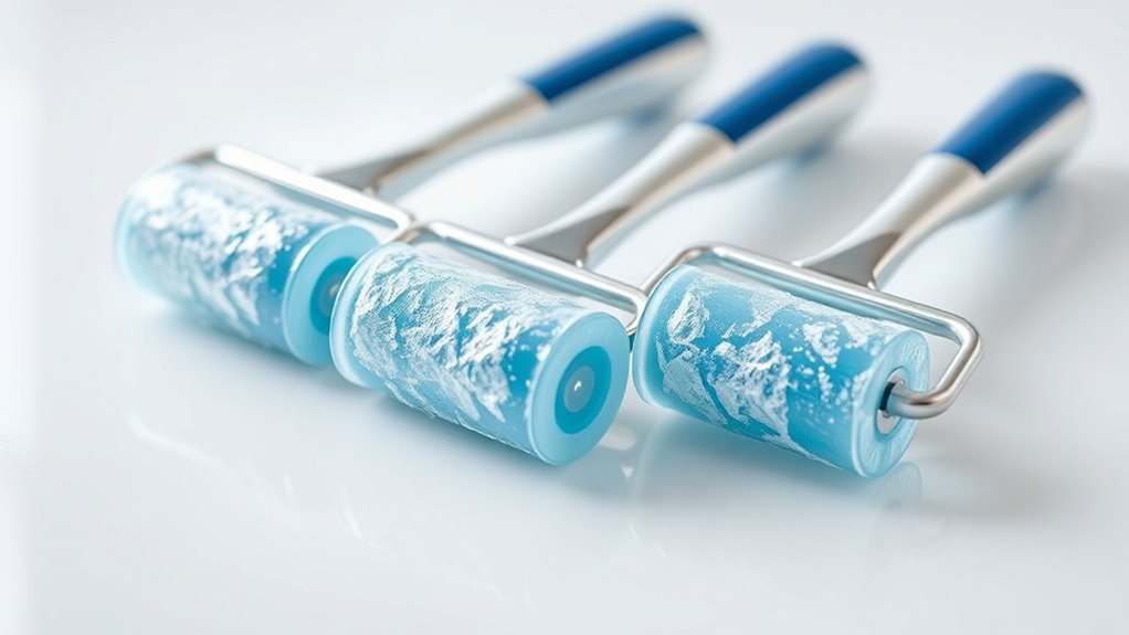Choosing an ice roller that’s easy to clean is essential for maintaining its hygiene and ensuring it stays effective over time. I look for rollers made from non-porous materials like silicone or stainless steel because they prevent bacteria buildup. Detachable or removable parts make cleaning more straightforward and thorough. If the components are dishwasher-safe or simple to wash with soap and water, it adds to the convenience. I also prefer smooth surfaces without intricate grooves or hard-to-reach areas, which can trap dirt and make cleaning a chore. Regularly cleaning my ice roller after each use not only keeps it sanitary but also prolongs its lifespan. An easy-to-clean design helps me maintain optimal hygiene without extra hassle.