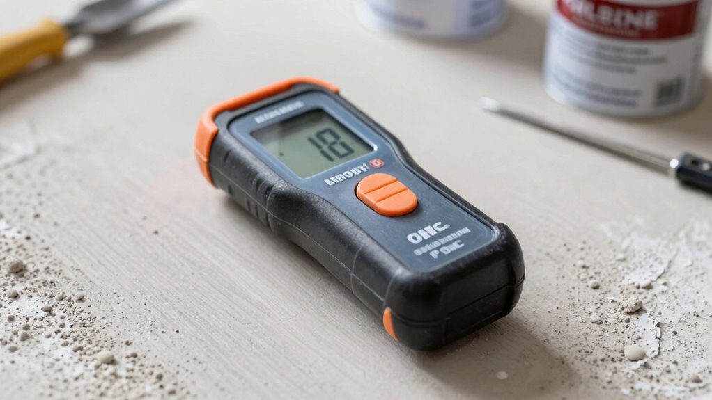 Moisture meters markedly impact drywall paint adhesion by ensuring the surface is properly dried before painting. I use them to detect residual moisture, which, if ignored, can cause paint to peel or bubble over time. By accurately measuring moisture levels, I can prepare the drywall correctly, resulting in a smooth, long-lasting finish. It’s a simple step that saves me time and prevents costly rework later on.