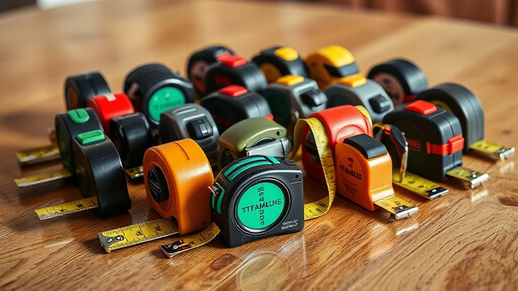 Choosing a tape measure with the right measurement accuracy is vital for painters who want precise results. Industry standards typically set tolerances such as ±1/16 inch for general use and as tight as ±1/32 inch for professional tasks. Accurate tape measures often feature clearly marked fractional and decimal scales, making it easier to get exact measurements in different contexts. High-quality blades coated with nylon resist wear, helping maintain precision over time by preventing elongation or deformation. Consistent, legible markings with minimal fading are essential for reliable readings. For detailed work like trim or cabinetry, selecting a tape measure with certified accuracy minimizes errors, reduces material waste, and ensures perfect fits. Prioritizing measurement standards guarantees your work is both precise and professional.