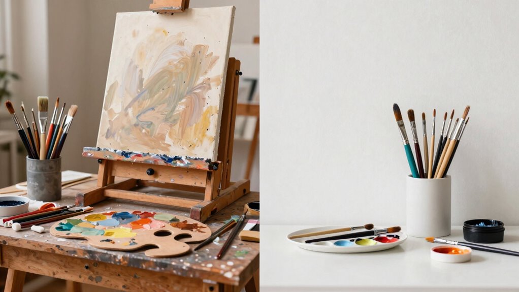 Whether you’re a daily painter or a weekend enthusiast, choosing the right tools makes all the difference. Think of your painting toolkit as a trusted companion—like a reliable brush that responds to your every stroke. For daily users, durability and precision keep you going, while weekend painters benefit from ease and versatility. Picking the right features guarantees your creative flow never stalls, turning each session into a smooth, inspiring journey—like gliding effortlessly across a fresh canvas.