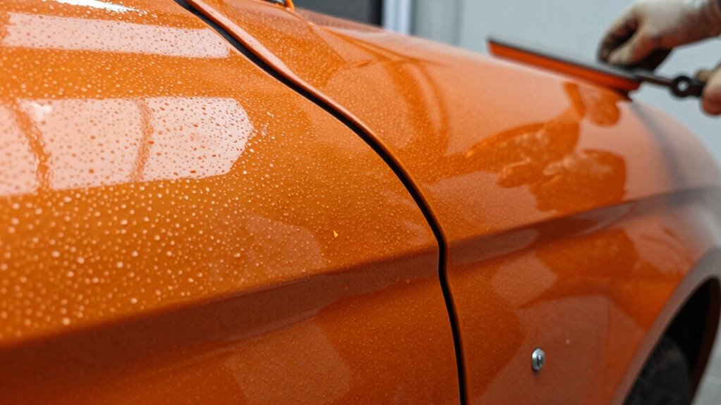 You’re in the driver’s seat when it comes to choosing paint types less prone to orange peel. Look for paints with self-leveling properties and consider using paint additives designed to improve flow and reduce surface imperfections. Mastering spray techniques, like maintaining consistent distance and speed, also helps. These steps can make your finish smoother, so you get a professional look without the extra fuss. Keep experimenting, and you’ll get it just right.