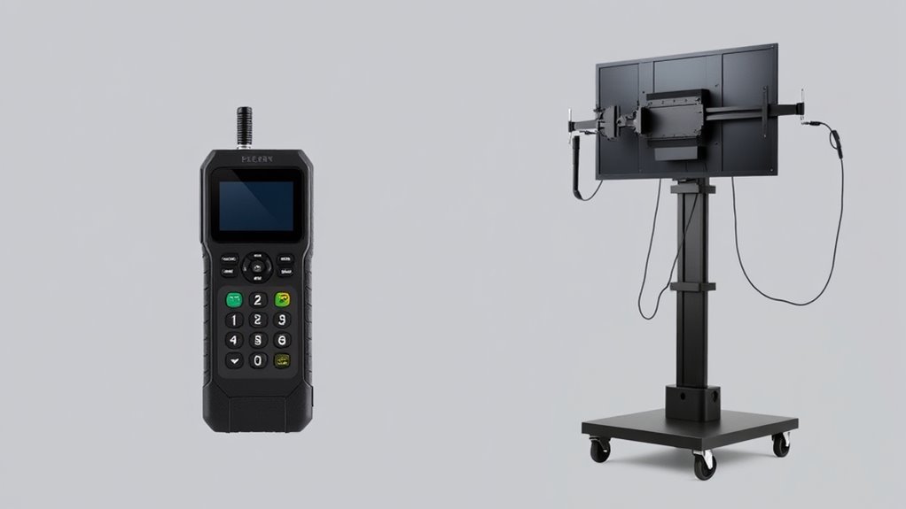 When choosing between portable handheld devices and cart or stand models, understanding their differences is essential to meet your specific needs. You need to contemplate how each type fits into your workflow, especially regarding battery life and ergonomic design. Portable handheld devices are lightweight and designed for mobility, allowing you to carry them easily from one location to another. Because they’re meant to be handled manually, their battery life is a critical factor—you want a device that can last through your shift without constant recharging. Many handheld models now come with impressive battery capacities, but it’s still important to check how long they can operate continuously, especially if you’re working in environments where charging stations aren’t readily accessible. Additionally, GMC tuning techniques can optimize device performance and longevity, ensuring reliable operation in demanding work conditions.