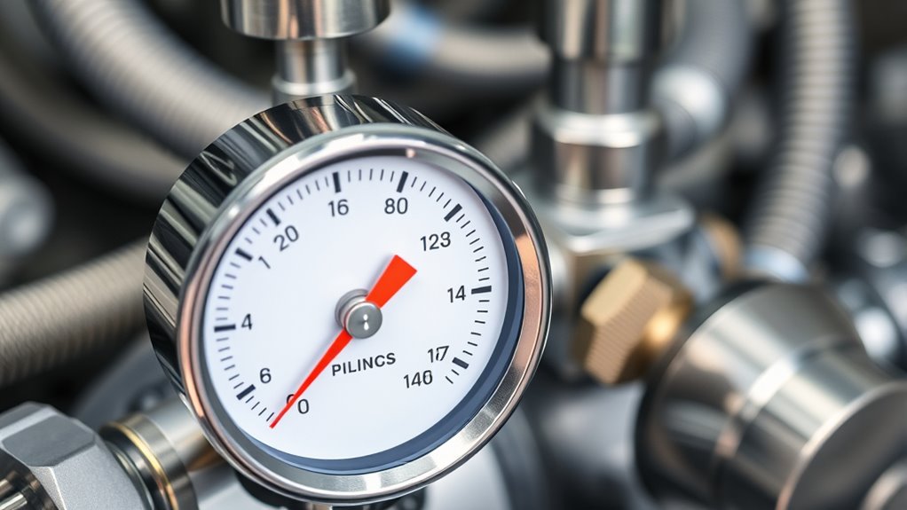 Temperature fluctuations can markedly impact your pressure settings, as they directly affect pressure stability. When the temperature rises, the air expands, increasing pressure, so you might need to lower your settings. Conversely, cooler temperatures cause contraction, reducing pressure, and may require you to raise your settings. Monitoring temperature changes helps you maintain consistent pressure stability, ensuring your equipment functions efficiently and safely regardless of environmental variations.