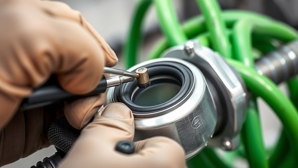 When replacing the seals, clean all parts thoroughly, removing any old gasket material, debris, or paint buildup. Using the correct replacement seals is essential; always match the new parts to the specifications of your sprayer model. Applying a light coat of lubricant can help the new seals seat properly, preventing leaks and ensuring consistent pressure. Be gentle during installation—forcing seals or misaligning components can cause premature wear or damage. Additionally, understanding the importance of proper seal materials can help you select the best replacements for durability.